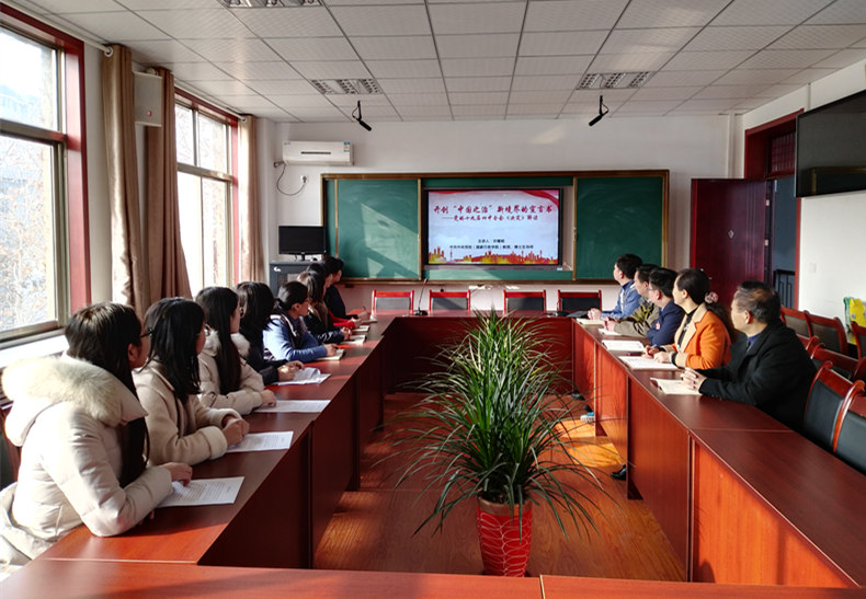 为深入学习贯彻党的十九届四中全会精神,结合开展“不忘初心、牢记使命”主题教育,1230 日下午,酷爱成人网 教工党支部和研究生党支部集中学习收看了“灯塔大课堂”第六课。全体师生党员和两名研究生预备党员参加,教工党支部书记马秀峰主持。