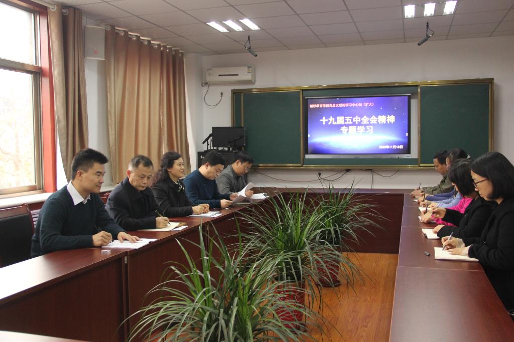最后,茌淑君在发言中指出,党的十九届五中全会,是在我国将进入新发展阶段、实现中华民族伟大复兴正处在关键时期召开的一次具有全局性、历史性意义的重要会议。十九届五中全会实事求是的对“十四五”规划和2035远景目标的指导思想、遵循的原则和主要目标做了全面的谋划,提出了高质量的规划和目标。茌淑君要求会后:一要认真学习领会十九届五中全会精神,并撰写个人学习心得;二要做好宣传工作,在全院形成学习宣传党的十九届五中全会精神的浓厚氛围;三要抓好贯彻落实,将十九届五中全会精神与深入学习习近平新时代中国特色社会主义思想结合起来,紧紧围绕学院发展,把全会的精神贯彻落实到校园疫情常态化防控和学院各项事业的高质量发展中,为学校“十三五”规划圆满收官和“十四五”规划贡献继教力量。