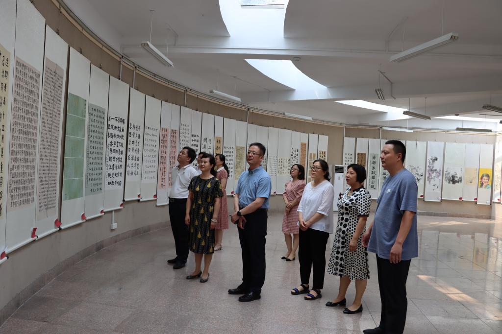 党总支理论学习中心组全体成员于书法学院展厅集中观看了庆祝建党100周年“清风曲园”廉文化作品展览。