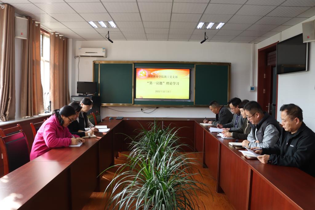 教工党支部“第一议题”专题学习了习近平总书记在深入推动黄河流域生态保护和高质量发展座谈会上的重要讲话精神与视察山东重要指示要求,传达了10月25日全省领导干部会议精神。会议由教工党支部副书记邢春雷主持。