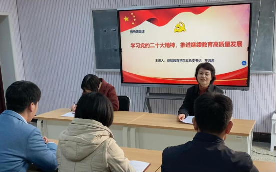 为深入学习宣传党的二十大精神,加强学院师生党性修养,11月18日下午,学院党总支书记茌淑君以“学习党的二十大精神,推进继续教育高质量发展”为题,为酷爱成人网