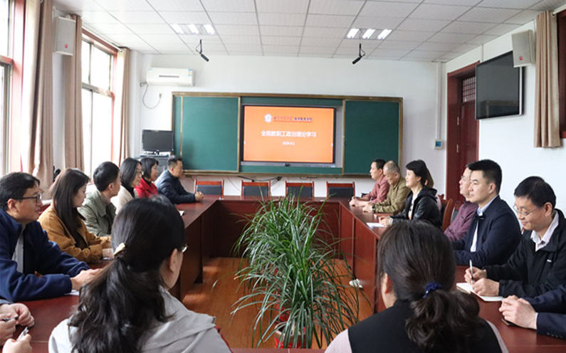 4月2日,学院召开教职工全体会议开展政治理论学习,学院领导班子及全体教职工参加,党总支书记茌淑君主持会议。