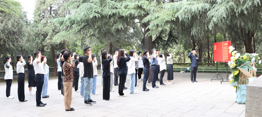 在羊山烈士陵园,讲解员带领大家瞻仰烈士公墓,在刻着“革命先烈永垂不朽”的纪念碑前,党总支书记茌淑君代表党员敬献花篮,全体党员默默伫立,深深三鞠躬,向为实现国家富强和人民幸福,前仆后继、浴血奋斗的烈士表达哀思。随后,副院长孙俊华带领党员高举右手,面对鲜红的党旗庄严宣誓,重温入党誓词。