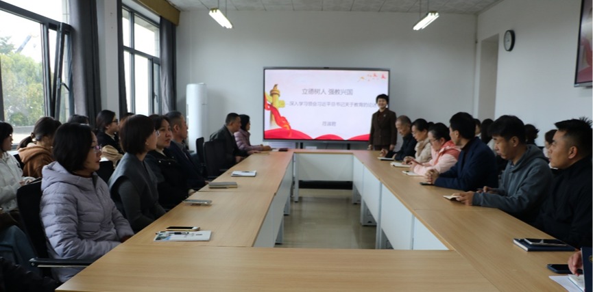 课堂上,茌淑君从“立德树人”的根本任务出发,围绕“深刻认识习近平总书记关于教育的重要论述的时代背景与重大意义”“系统把握习近平总书记关于教育的重要论述的核心要义与丰富内涵”“深入学习领会习近平总书记关于教师队伍建设的重要指示批示精神”“从‘心’出发,‘托举希望’迈向教师与教育发展的新征程”四个方面深刻阐述了教育在国家发展中的重要地位和作用。她强调,教育是国之大计、党之大计,教师是立教之本、兴教之源,全体教师要深刻把握并切实践行习近平总书记关于教育和教师工作的核心要义与实践要求,不忘立德树人初心,牢记为党育人、为国育才使命,为实现中华民族伟大复兴的中国梦作出自己应有的贡献!