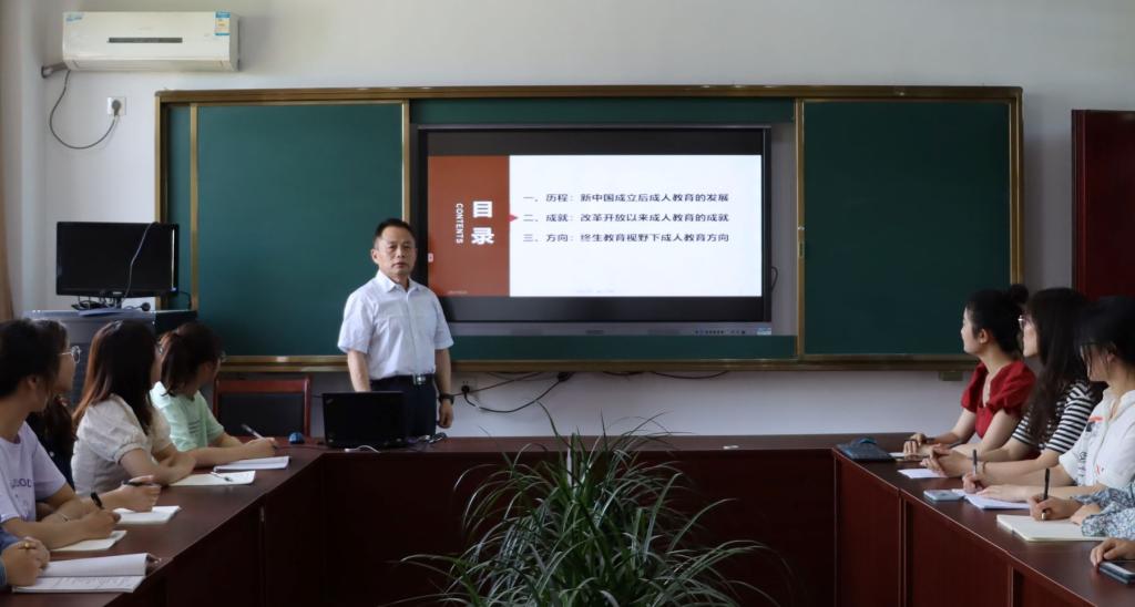 研究生讲授思政课,与大家回顾成人教育历史、展望成人教育的发展。