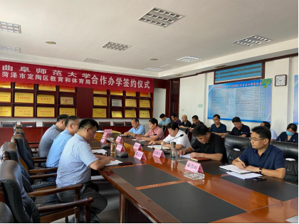 与菏泽市定陶区教育和体育局合作办学签约仪式在定陶区教育和体育局会议室举行。