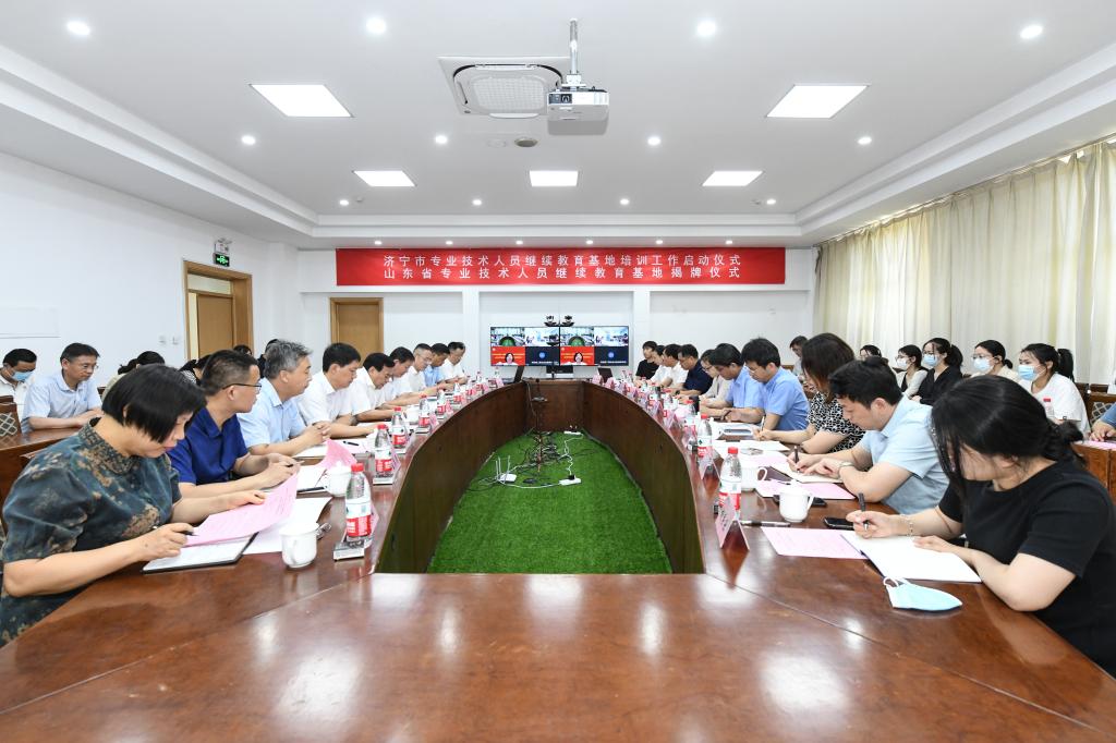 曲阜师大酷爱成人网讯(记者:孙琪 摄影:董少伟) 6月6日,2022年度济宁市专业技术人员继续教育基地培训工作启动仪式暨山东省专业技术人员继续教育基地揭牌在曲阜师大举行。曲阜师大副校长冯冲,山东省继续工程教育协会理事长陈月军,济宁市人力资源和社会保障局党组成员、副局长张慧慧,山东大众云学教育科技有限公司,曲阜市人力资源和社会保障局,北京网梯发展有限公司,酷爱成人网