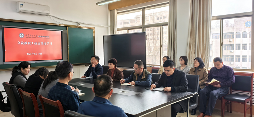 313日下午,学院开展教职工政治理论学习活动,集体学习了十四届全国人大三次会议上国务院总理李强作的《政府工作报告》,本次学习由学院党总支书记茌淑君主持,全体教职工参加。