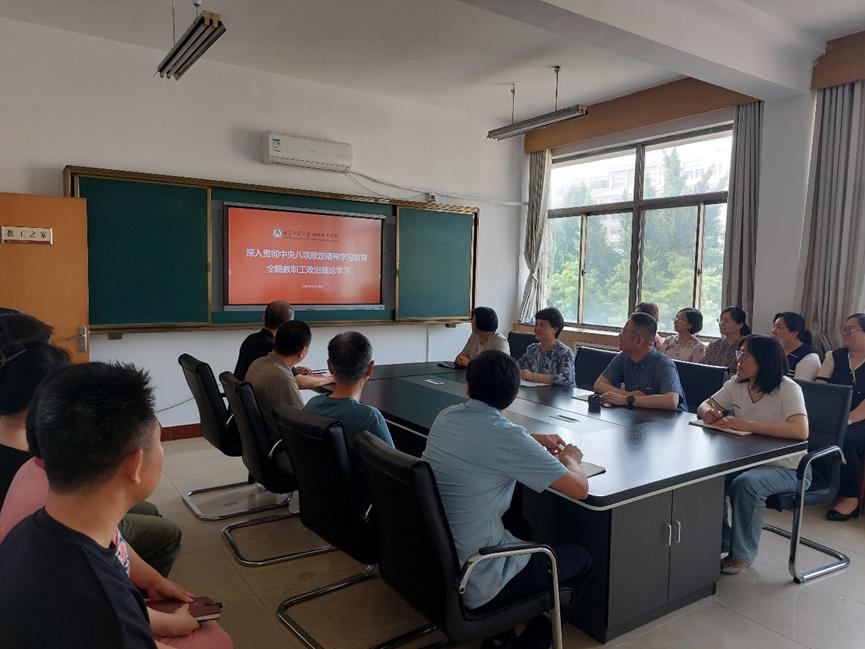 5月28日,学院召开全体教职工会议,开展深入贯彻中央八项规定精神学习教育,党总支书记茌淑君主持会议并讲话。