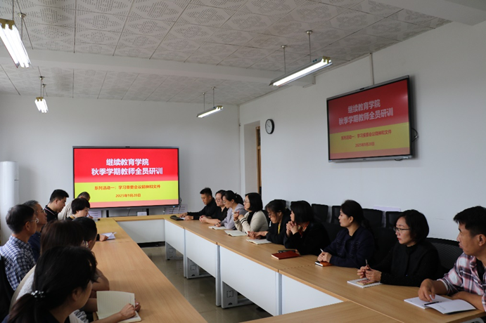 于近期正式启动了2025年秋季学期教师全员研训活动。9月26日上午,研训首场专题学习在学院504室举行,学院党总支书记茌淑君主持,全体教职工参加。