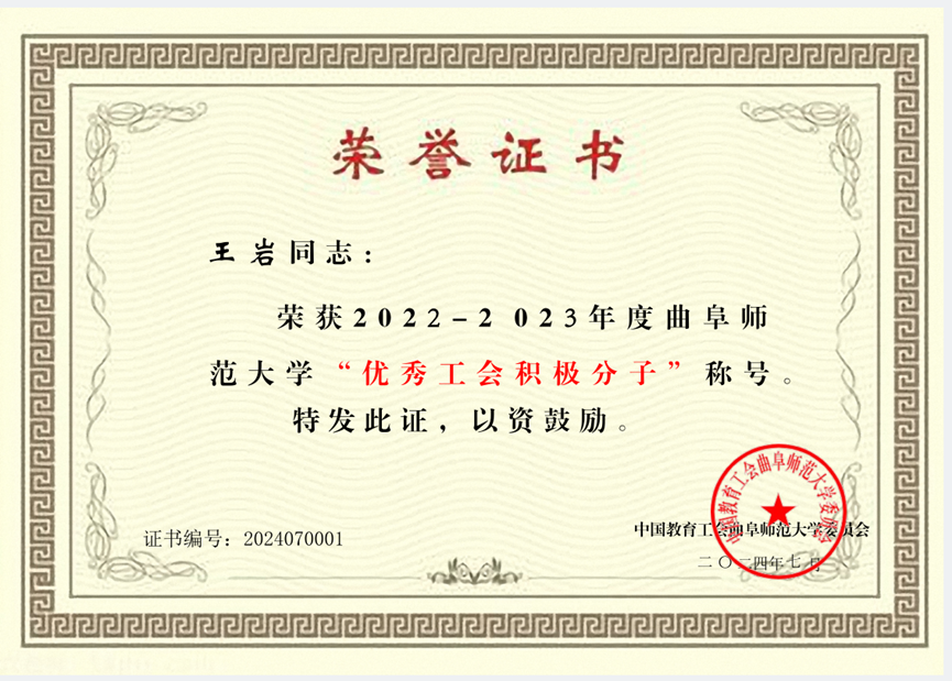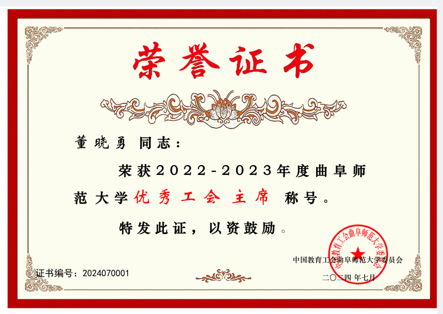 分工会2022—2023年度工会工作“先进集体”称号、授予董晓勇同志“优秀工会主席”称号、授予王岩同志“优秀工会积极分子”称号。这一殊荣不仅是对酷爱成人网