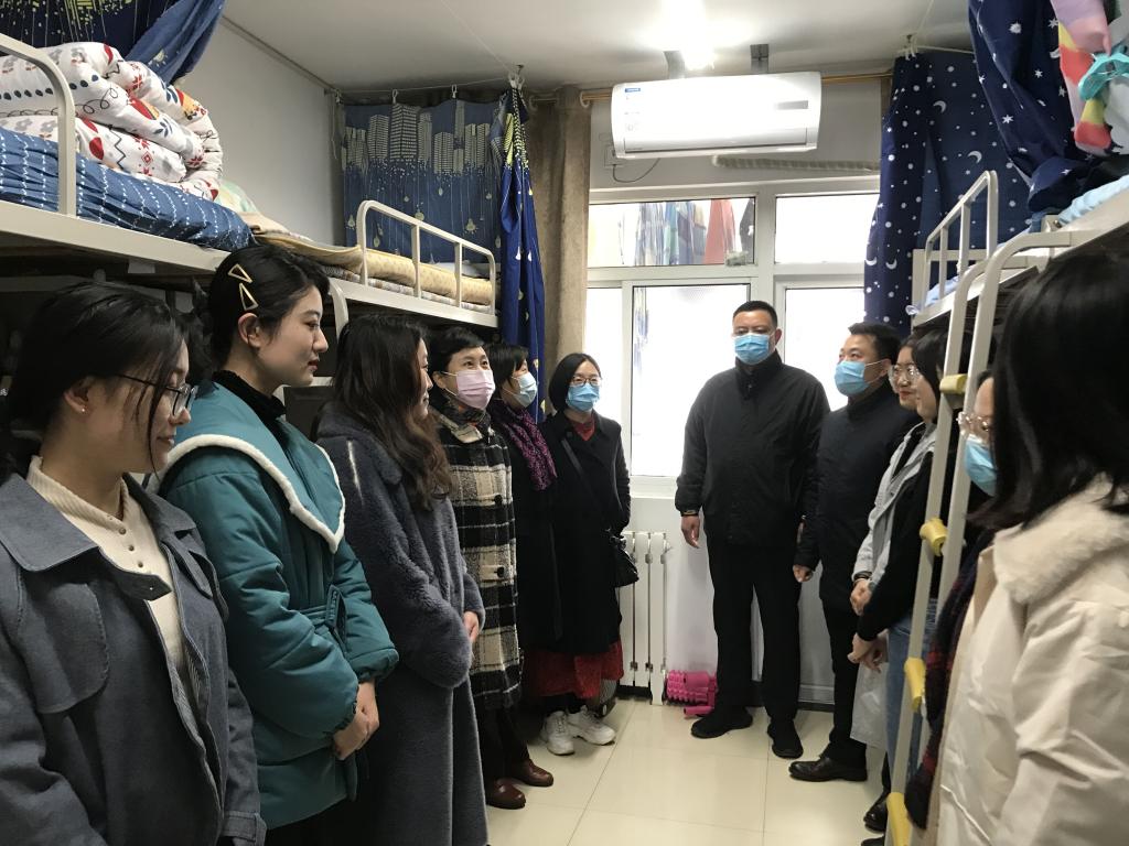 党总支书记茌淑君带队,职业与继续教育研究院院长何爱霞、院办公室主任徐青、研究生辅导员孙长远、康红芹共同组成检查小组,前往研究生宿舍和自习室开展卫生、安全、防疫等检查工作。