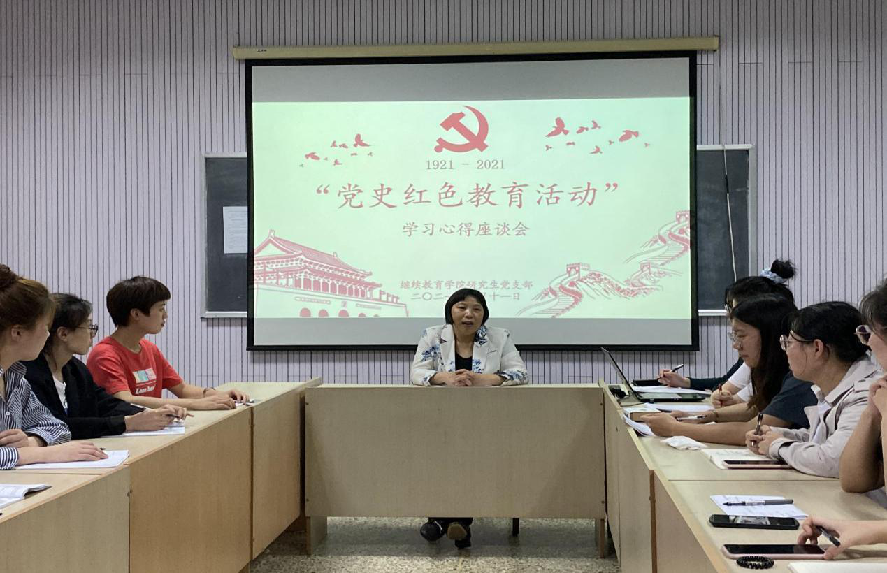 组织师生赴邹城开展了党史红色教育活动。活动结束后,为巩固深化研究生党员及入党积极分子对本次活动的认识、加强党性修养,学院研究生党支部于5月11日晚召开了“党史红色教育活动”学习心得座谈会。座谈会由职业与继续教育研究院院长何爱霞主持,共15位研究生党员和入党积极分子参加了会议。