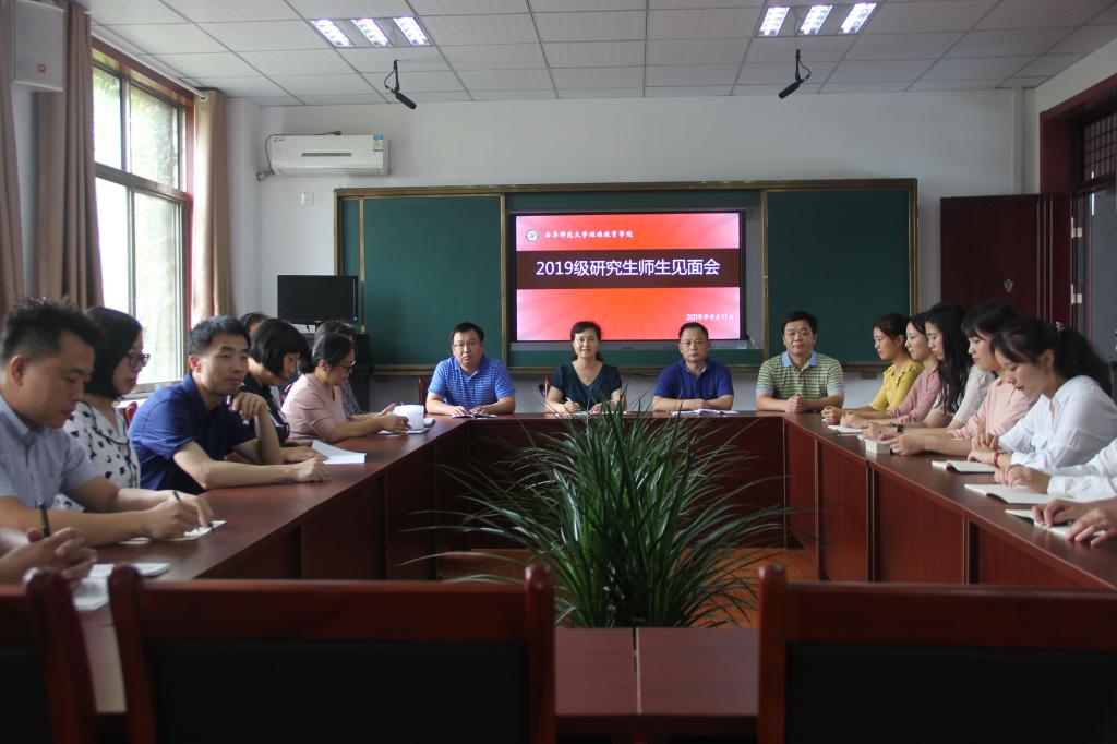 2019级研究生师生见面会在学院会议室隆重举行。学院党总支书记茌淑君、院长马秀峰、副院长邢春雷、副院长晏逾、职业与继续教育研究院院长何爱霞、党政办公室主任徐青、自考培训部部长杨来舜、教学部部长李宗花、教务部部长韦亚星、职业与继续教育研究院教师秦发盈、康红芹、孙长远,以及2019级研究生新生参加了本次师生见面会。会议由茌淑君书记主持。