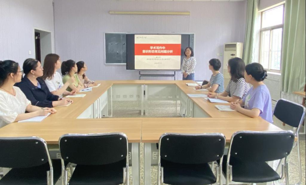 在第二个环节中,研究生党支部书记康红芹同志为支部成员讲党课:《学术写作中意识形态常见问题分析》。她基于对意识形态工作备受重视的认识,同时结合研究生培养工作的性质,通过案例分析的方式,呈现出学术写作中常见的意识形态问题,并提出了规避方法。