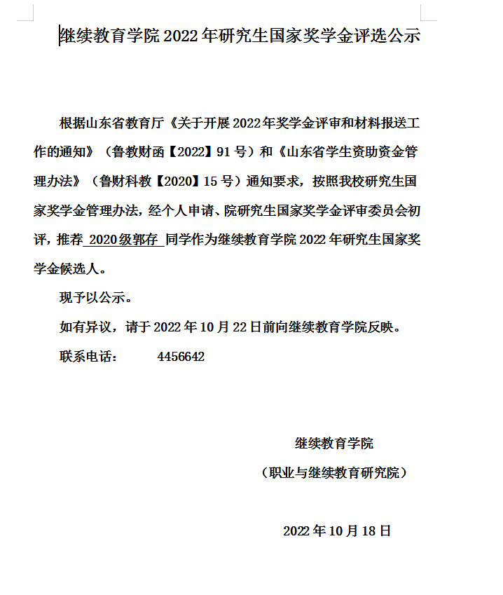 酷爱成人网 2022年研究生国家奖学金评选公示