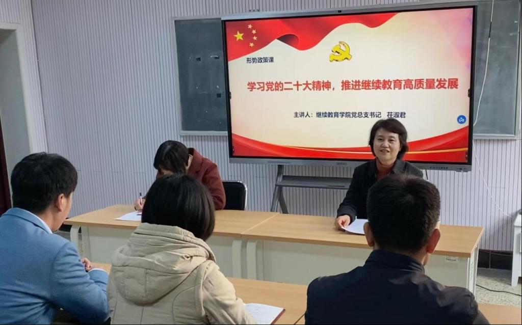 为深入学习宣传党的二十大精神,加强学院师生党性修养,11月18日下午,学院党总支书记茌淑君以“学习党的二十大精神,推进继续教育高质量发展”为题,为酷爱成人网