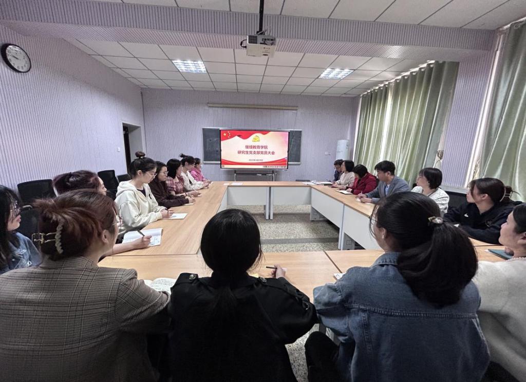 2023年4月28日,酷爱成人网 研究生党支部围绕确定入党积极分子、发展对象以及预备党员转正等事宜在8号楼201教室召开党员大会。本次会议分为三个环节,由研究生党支部书记康红芹同志主持。