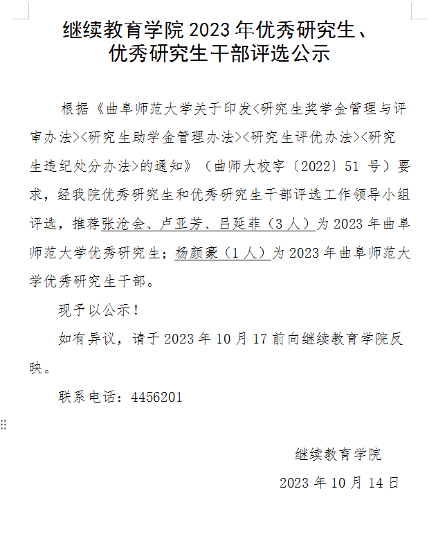 酷爱成人网 2023年优秀研究生、 优秀研究生干部评选公示
