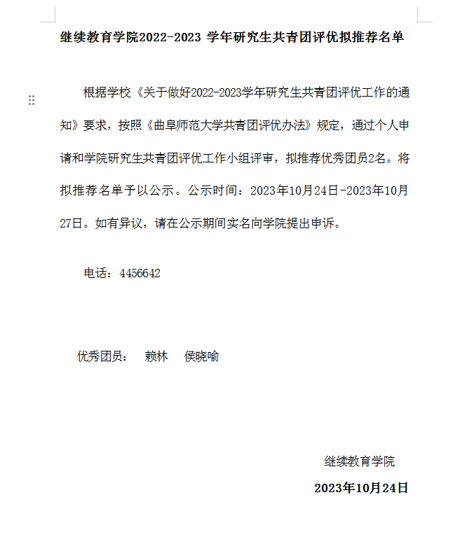 酷爱成人网 2022-2023 学年研究生共青团评优拟推荐名单