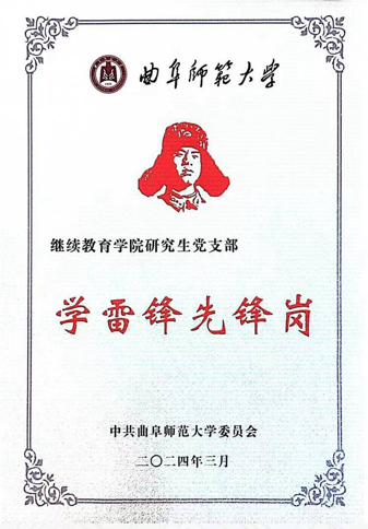 研究生党支部被授予“学雷锋先锋岗”荣誉称号。研究生党支部积极贯彻落实习近平总书记关于弘扬雷锋精神的重要指示,立足支部实际,创新服务模式,发挥了模范带头作用。
