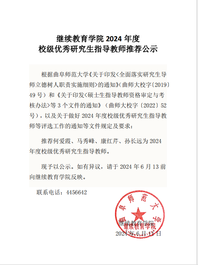 酷爱成人网 2024年度校级优秀研究生指导教师推荐公示