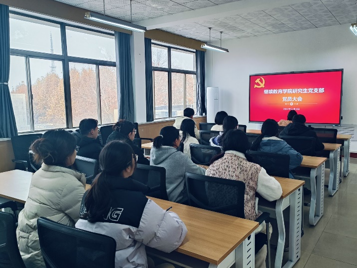 研究生党支部召开党员大会研究预备党员转正事宜。研究生党支部全体党员参加会议。会议由党支部书记吕建强主持。