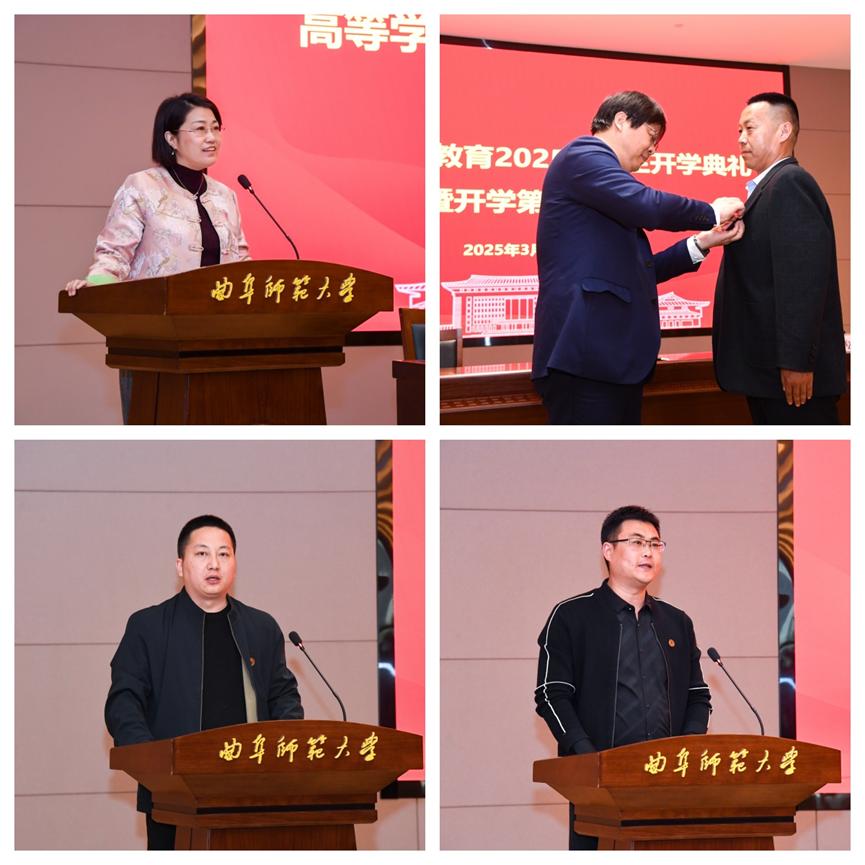 教师代表、外国语学院教授高歌,新生代表胥勇和校外教学点代表、潍坊市寒亭区加华培训学校校长王庆泉先后发言。高歌教授寄语新生们学无止境,要以勤勉为舟,以毅力为桨,在人生的第二赛道上,书写属于自己的“犁牛之子”传奇。胥勇表示将铭记学校领导的殷切嘱托与师长的谆谆教诲,珍惜在孔子故里求学的宝贵时光,明德修身,求是笃行,学以致用,实现自己的人生目标。王庆泉表示要继续加强与大学的沟通与合作,积极参与学校的教育教学改革,规范办学,努力提升校外教学点管理和服务能力。